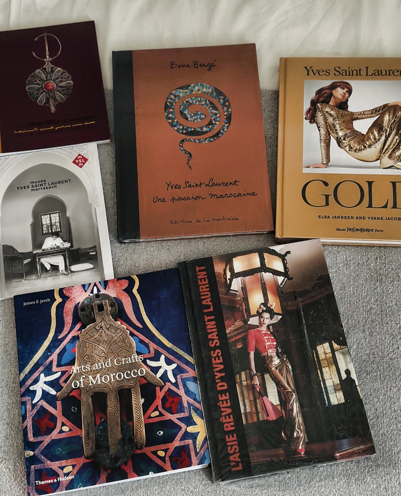 Воссоздавая или вызывая воспоминания о далеких странах, его ориентальные артефакты находят свое место среди других работ. Хотя трудно отследить происхождение всех предметов, некоторые из них появились непосредственно из стран Магриба и Азии. Так обстоит дело с произведением, присланным из Японии постоянным корреспондентом г-м Хироши Кавазоэ, представителя дома Ив Сен-Лоран в Токио и личного друга Пьера Берже.