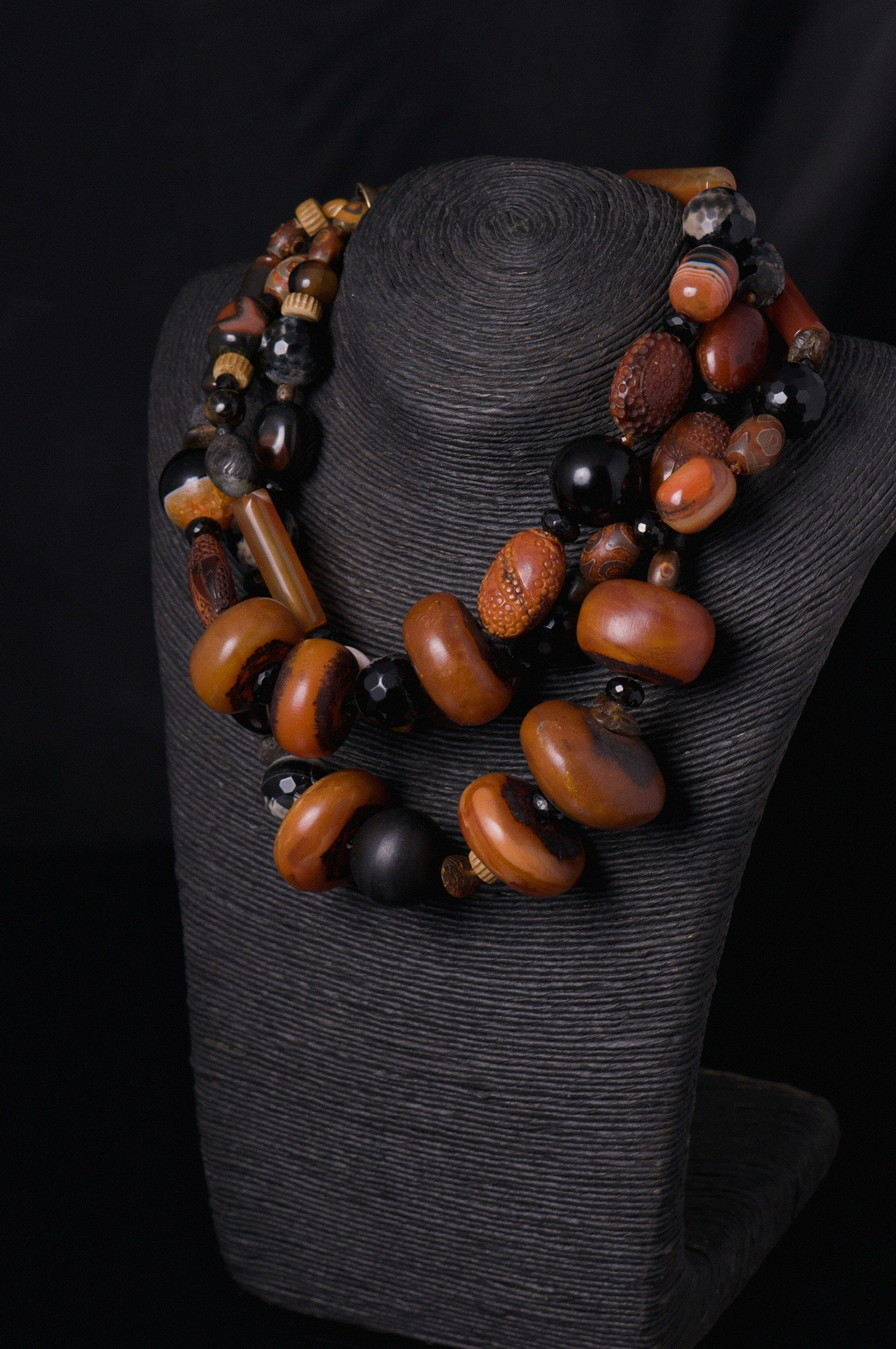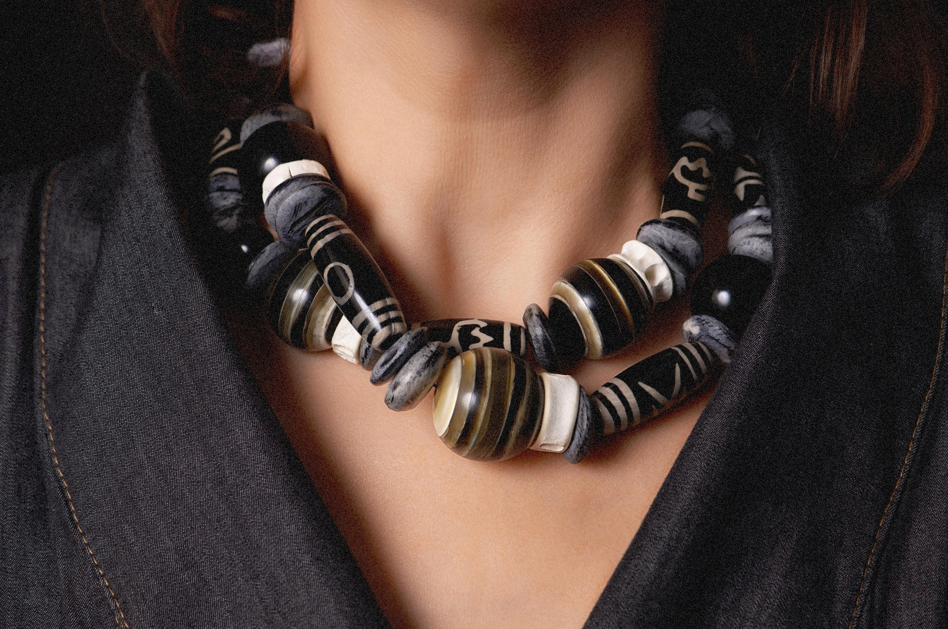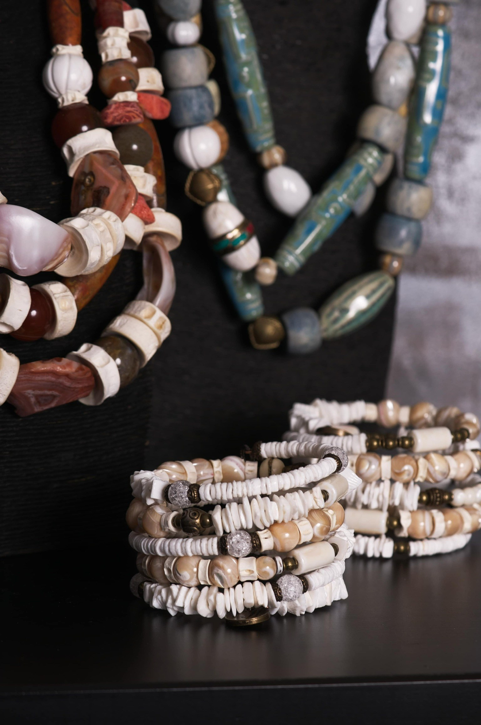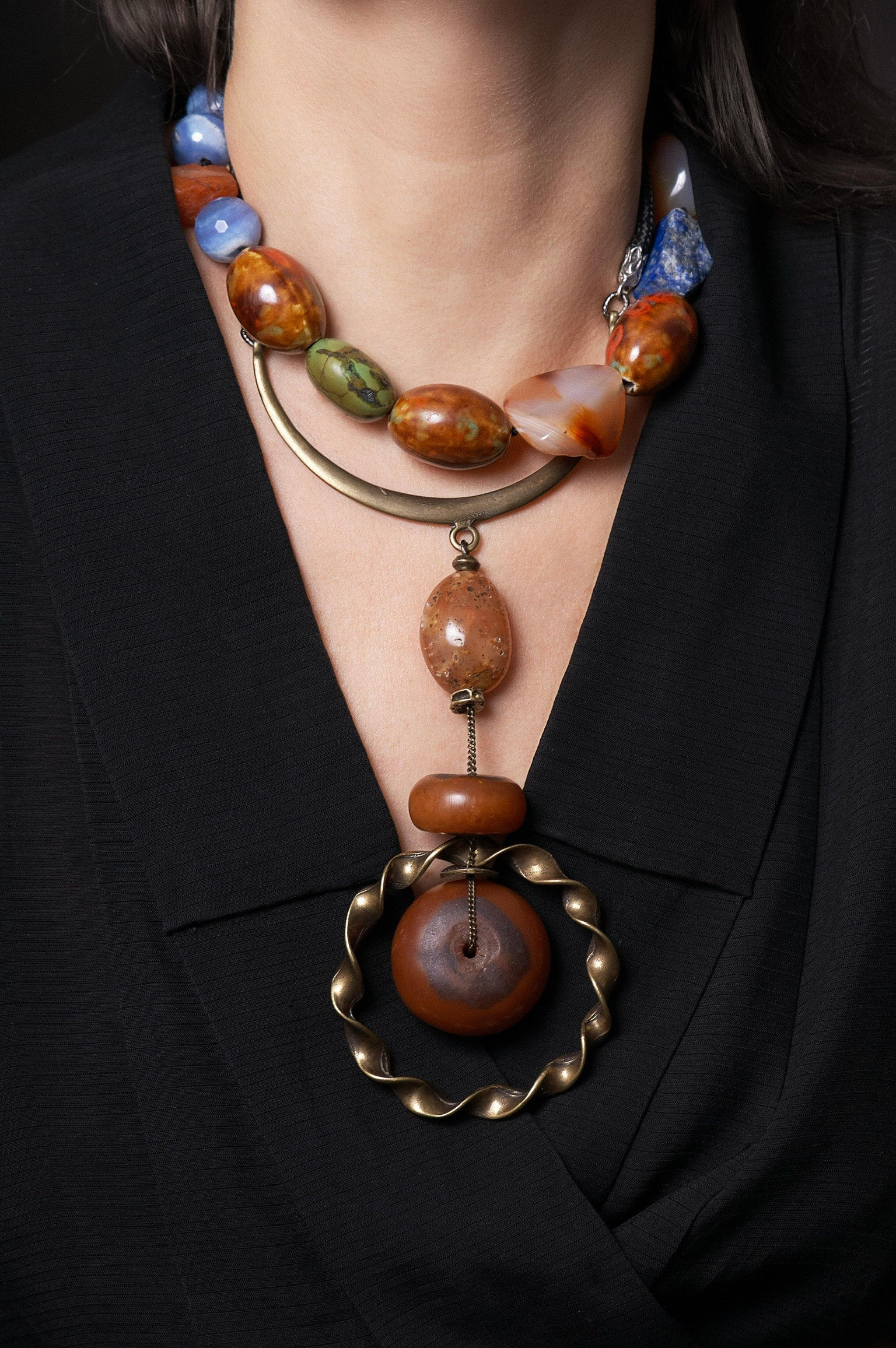 Основа коллекции — аутентичные этнические формы и поразительная гармония цветов, мастерское сочетание оттенков камней, этнических бусин и артефактов найденных на разных континентах.
